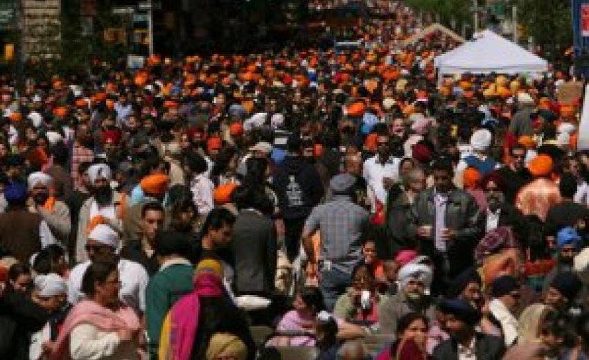 He was one of scores of Sikhs giving away literally tons of food and drink as part of the annual Sikh Day Parade on Saturday: plates of freshly prepared Indian vegetable dishes, breads and desserts, along with bottled water, sodas and hot tea.