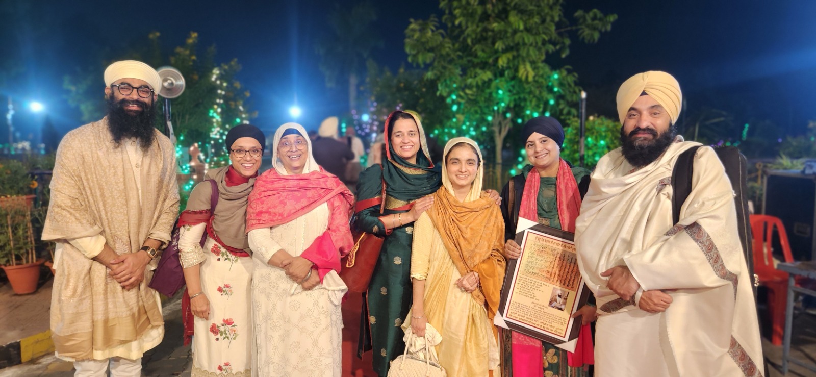 November 22, 2025 ~ Khalsa College for Women, Amritsar, featuring 5 women - Biba Guneet Kaur of USA, Biba Prabhjot Kaur of Batala, Biba Laxmi Kaur of Delhi, Biba Rajwinder Kaur of Amritsar, and Biba Amandeep Kaur of Amritsar. The love and intention behind this program was unmistakable - the excitement and reverence of the organizers, visible in every thoughtful detail and in the warmth with which they received us. Led by Sardar Harmanjeet Singh of Sri Guru Singh Sabha, Amritsar, in collaboration with Dr. Mehal Singh, Vice Chancellor of Khalsa University, the event reflected a deep sense of joy and pride in honoring Guru Teg Bahadur through recognizing women-led spiritual leadership.