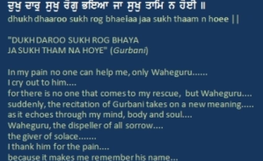 "DUKH DAROO SUKH ROG BHAYA JA SUKH THAM NA HOYE" (Gurbani) In my pain no one can help me, only Waheguru......I...
