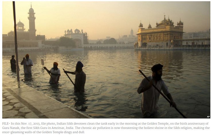 The chronic air pollution blanketing much of northern India is now threatening the holiest shrine in the Sikh religion, making the once-gleaming walls of the Golden Temple dingy and dull.