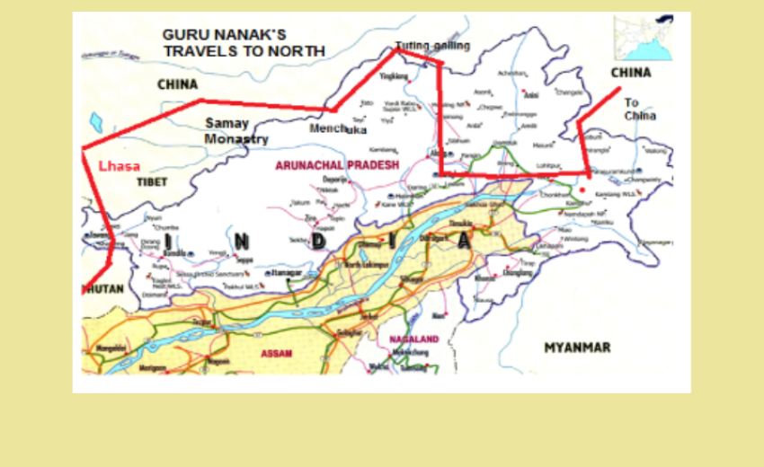 Janam Sakhi Walait Wali, Janamsakhi Bhai Bala, Janamsakhi B-40, Varan Bhai Gurdas, Gyani Gyan Singh’s Twareekh Guru Khalsa, Gyani Lal Singh’s, Guru Khalsa Twareekh, Bhai Veer Singh’s Guru Nanak Chamtkar, Dr Surinder Singh Kohli’s Travels of Guru Nanak, Dr Arjan singh Mann’s Guru Tegh Bahadur, Dr Tarlochan Singh’s Guru Nanak on Roof of the world, Taluka Tarungpa’s Guru Nanak in Tibet, Sikh Review articles of Lt Col N S Issar, Surinder Singh SPS Ahluwalia and many others. Gyani Gyan Singh, Dr Surinder Singh Kohli, Dr Arjan Singh Mann and Dr D S Grewal are very specific of Guru Nanak’s travels to Chungthang, Lachen, Gurudongmar, Bhutan, Dhubri, Gwahati, Girgaon-Nazira, Majhuli, Golaghat, Sadiya, Brahamkund, Burma and China. Further confirmation was done through interviews with Sange Lera of Segang; Rigdzin Rimpoche, incharge of 12 Gomphas in Tibet, JK Butia, Intelligence Officer Thanggu, Chungthang Lama, Lachen lama, Thanggu Lama, Zimithang Lama, Lt Col Bikkar Singh in Bhutan, Lt Col Bakshi in Arunachal Pradesh, Pandit Ram Saran Das Head Priest Brahmkund, Harpal Singh Nazira-Girgaon and many others whose interviews are recorded.