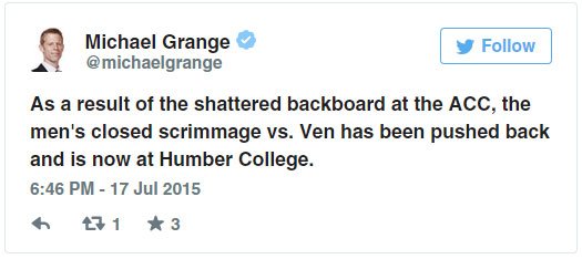 That’s what the centre (unintentionally) did at the Air Canada Centre during a Team Canada practice Friday as they prepare for their upcoming Pan Am Games tournament.