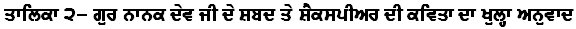 From the above comparison the fact remains that the two conceptual frameworks are same and the descriptions are also very similar. It however remains to be solved as to whether one of them borrowed the concept and the description from the other . Guru Nanak (1469-1539) and William Shakespeare (1564-1616) lived in two different periods the Shakespeare's period being after Guru Nanak and in different continents i.e., Asia and Europe. Hence they would not have met each other at all. Guru Nanak's hymns were already being recited by his disciples and existed in the form of pothi.