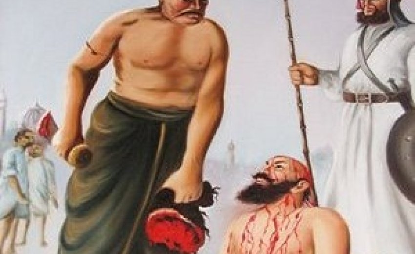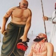 ![]() Sikhs of the past chose death before cutting their hair, here Bhai Taru Singh is tortured and than has his scalp removed in refusal to give up his Sikh identity (hair) |