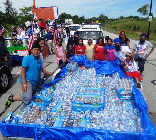 More than fifty Sikh American men, women and children affiliated with Palatine Gurudwara marched with pride along with a float decorated with patriotic colors. The Sikhs distributed free cold water bottles and candy to the spectators all along the parade route.