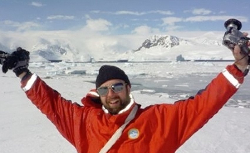 To cross from Ushuaia, Argentina, to Antarctica, he worked on a luxury cruise ship as an assistant to the expedition leader. "You clean the boots of the tourists, you help them on the ice, you put red flags around the penguin field, you help refill the boats with gasoline," he said.