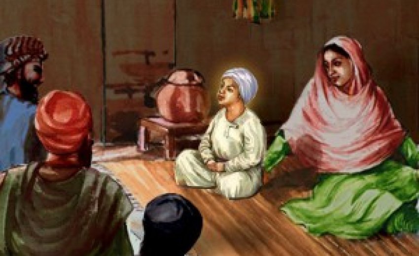 As Guru Nanak grew older, he would more and more avoid company and seek seclusion. He would remain for long hours in his room without eating or talking. At sixteen he had nothing in common with other boys his age. His mother was, of course, greatly concerned. She caressed him tenderly and tearfully begged him to follow his father's advice. "You are so wrapped up in yourself that people think you have lost your reason. They talk ill of you as of us. My darling, I want people to talk well of all of us. And, my son," she continued, "you must eat something, how can you live without food? What is this true Name of which you are constantly speaking?"