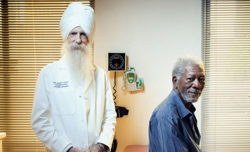 Morgan Freeman, left, and Dr. Soram Khalsa