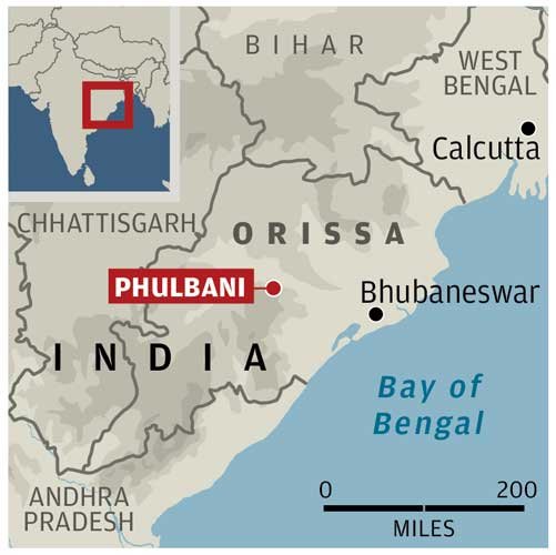The journey to the heart of the violence follows a bone-shaking road east from Bhubaneswar to the district capital, Phulbani. It was here in late August that thousands of Hindus armed with swords, sticks and primitive guns began taking matters into their own hands after the murder of an elderly religious leader, Swami Laxmanananda Saraswati.