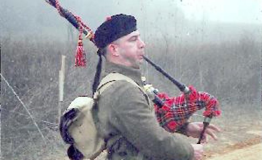 In 2008, Mick Stewart shared that World War Two Historical reenactors planned to honour the service and sacrifice of all Allied soldiers who served in the Far East Theatre during World War II. Mick was the Drum Major of the 2nd Battalion King’s Own Scottish Borderers (KOSB) Pipe Band in Houston, Texas. As a part of the initiative, they formed a Scottish pipe band to help enhance their efforts to honour the British and Indian Army, and all Indian, Gurkha, and Sikh regiments.