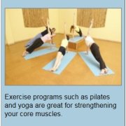 There are multiple ways to build your core strength, one of them being exercise programs such as pilates and yoga. Both of these methods work the muscles of the abdomen, lower back and buttocks to create flexibility and strength.