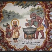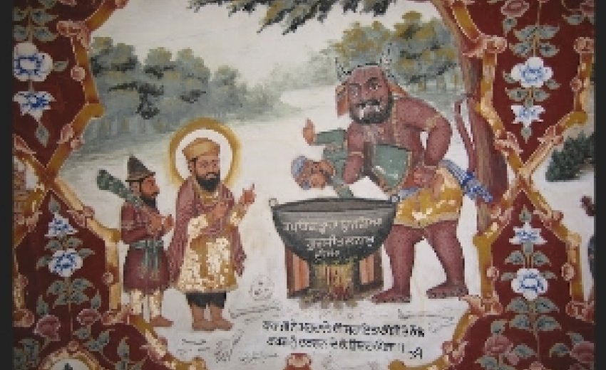 We see the Demon Kauda about to boil Bhai Mardana in a cauldron, when Guru Nanak comes to his