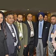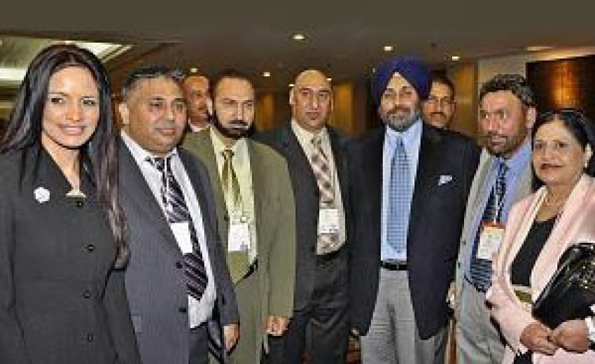 Sukhbir Badal is seen with Canada MP Ruby Dhalla and other NRIs