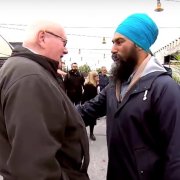 As Singh engaged prospective voters at Atwater Market this morning in front of media cameras and reporters, the man approached him.