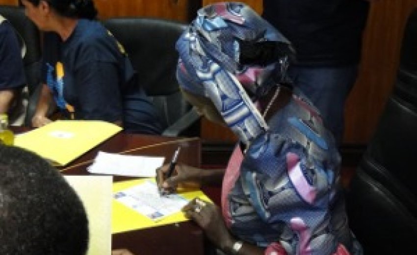 Her Excellency, Mrs. Pauline Kalonzo signing the pledge for the Sri Guru Nanak Food Bank, a project of UNITED SIKHS
