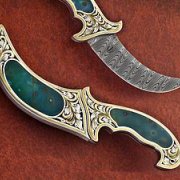 Below is a photo of one of Jot Singh's custom-made Kirpans. It is made of stainless Damascus steel with argentium sterling silver and ocean jasper (mineral from Madagascar) and 24Kt. gold inlay work and engraving. Jot Singh invites everyone to contact him to create something unique and inspired for yourself or your loved ones.He is a true artist and creating beautiful kirpans is his passion.