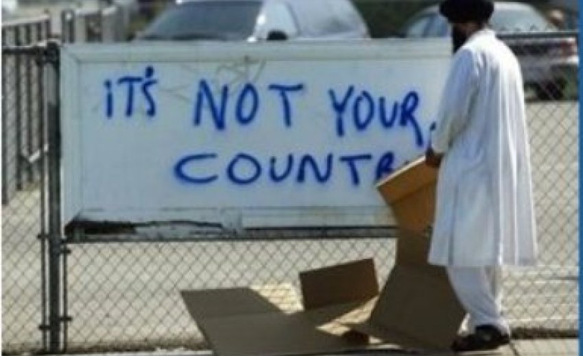 Ex. A turbaned Sikh num is walking dawn the street when a man shouts. "Hey terrorist. Where you