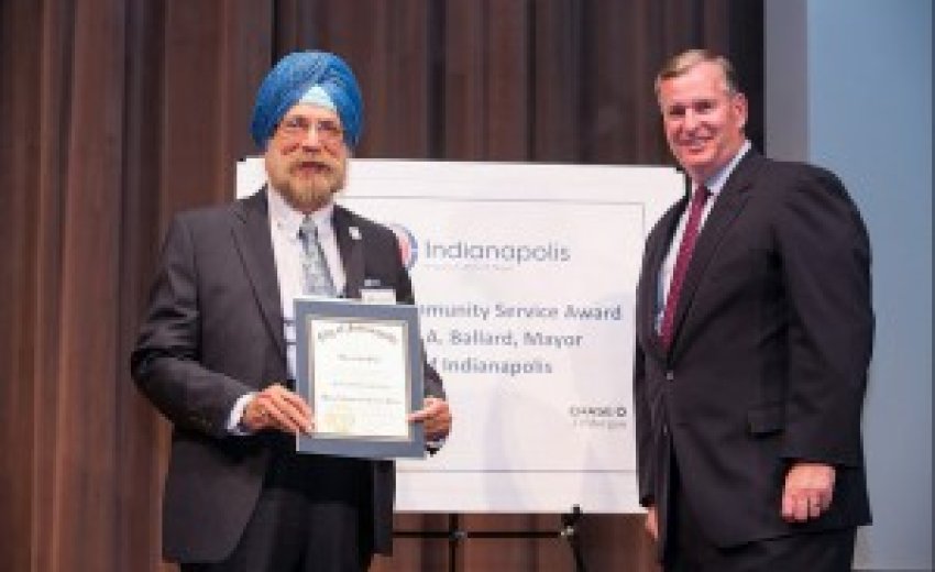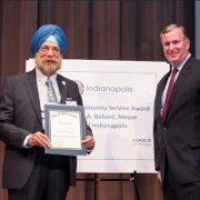 Kanwal Prakash Singh was among 12 volunteers who were honored by Indianapolis Mayor Greg Ballard with Community Service Awards at the 22nd annual award function at the Eugene and Marilyn Glick Indiana History Center on September 22, 2014. Over the past 47 years, KP has greatly contributed to the international landscape, vision, and spirit of Indianapolis and Indiana through his sense of history, artwork, cultural literacy, journalism, and civic engagement.