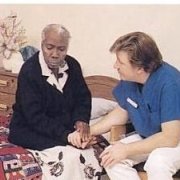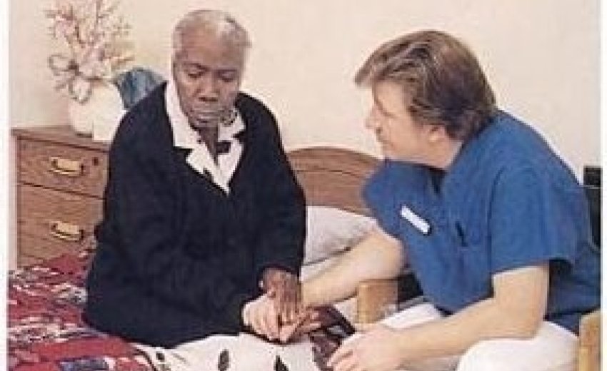 | A nurse communicating with an elderly client |
