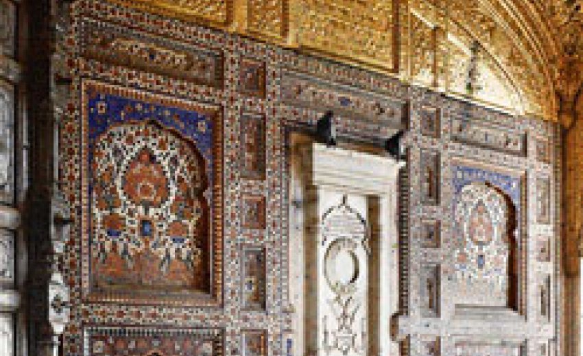 ‘Zoned in dazzling white,’ said fellow Frenchman, Baron Jean Pellenc, of this scene in 1933, ‘the water of the tank is blue beyond description, and in the midst glitters a marble islet crowned with a peerless diadem of gold.’ A century earlier, the following description of the holy site was published in a French newspaper, ‘Le Magasin Pittoresque’: ‘Everyone subscribing to this creed devotes himself with dedication and fervour, and as often as possible, to bathing in the Lake of Immortality (Amritsar). Day and night a huge crowd mills around this sacred enclosure, and it has never been known for any Sikh to abandon his pilgrimage through the threat of danger, however imminent.’ I couldn’t have said it better myself. Shot 6 – Elegant Archway, Marble Causeway