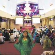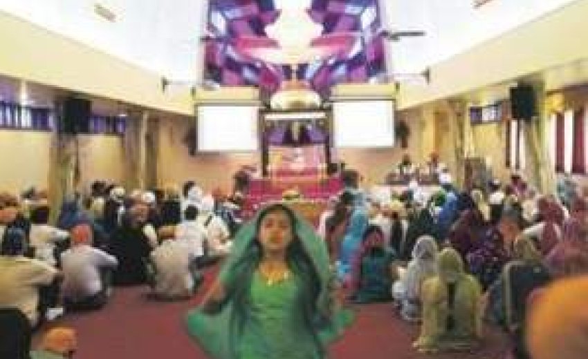 Priests sang prayers and played drums. The assembled faced the Sikh's holy book set on an altar beneath pink veils.