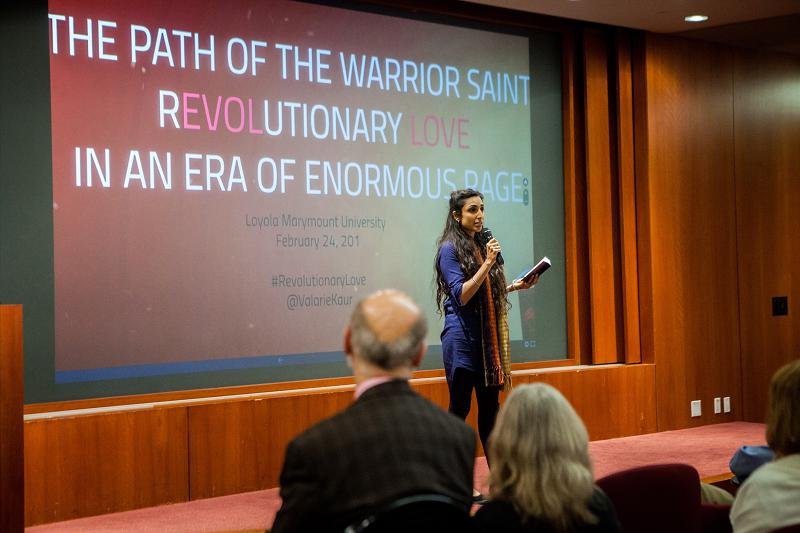 Valarie Kaur is an highly engaging and inspiring speaker whose videos have recently gone viral, one having reached over 16 million views. Her participation at this conference brought the conference, program, and university to a wider audience. In line with the experiential nature of the scholarly program, two spoken word pieces were delivered by Mayuri Bhandari, an MA student in Yoga Studies program at LMU (herself a Jain). Her piece “Listen” spoke about environmental awareness cultivated through a meditative mindset as well as “Blake Snake,” a response to her experience protesting at the Dakota Access Pipeline.