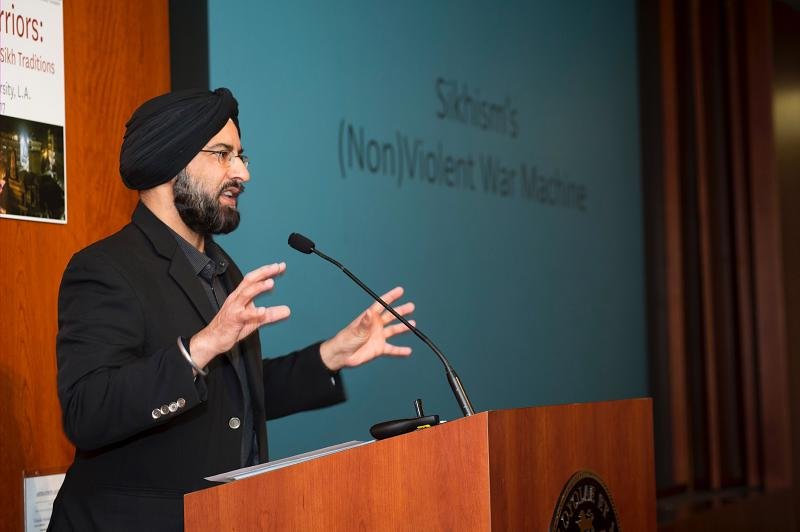 Professor Arvind Singh Mandair (University of Michigan) presented “Sikhism’s Nonviolent War Machine” as a way to reinterpret violence and nonviolence. Guru Nanak can be understood as using a quietest form of “violence” through poetry and song to resist social inequality and oppression. In this way, the warrior identity given to the Sikh community by the 6th and 10th Sikh Gurus was not a deviation from the earlier “mystical” practices (as is the common misconception) but instead operates at differing registers of violence to counter the symbolic and overt violence of the State.
