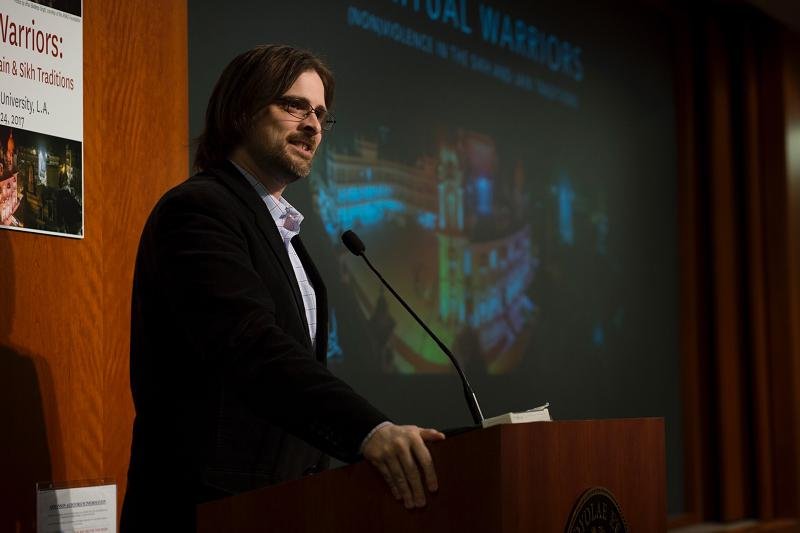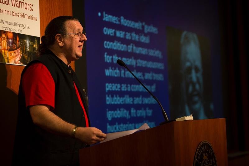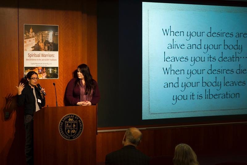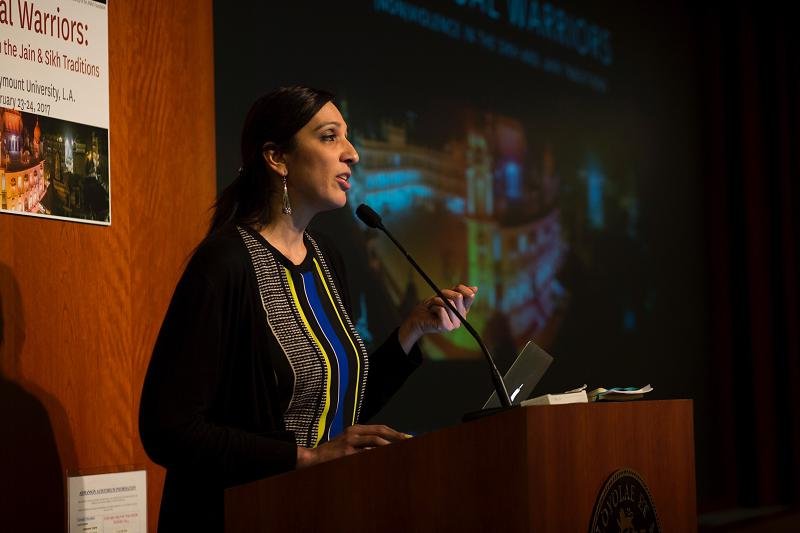 The second annual Sikh and Jain conference “Spiritual Warriors: Non-Violence in the Sikh and Jain Traditions” February 23-24, 2017 was organized by the first ever Jain and Sikh Studies professorship held by Nirinjan Kaur Khalsa, Ph.D. which is hosted in the Department of Theological Studies at Loyola Marymount University in Los Angeles, California. This conference brought together prominent Jain and Sikh scholars working in the interdisciplinary fields of Bioethics, Philosophy, Religious Studies, Anthropology, Feminist Studies, Visual Studies, and Literature to explore the themes of violence and nonviolence in diverse ways. Additionally, Jain and Sikh activists gave talks on nonviolence and revolutionary love to frame the conference, whose purpose it was to speak directly to the current moment by bringing Sikh and Jain perspectives and practices of love and care for one another as offerings to the darkness of our times in which rage, hate, and fear seem to pervade.