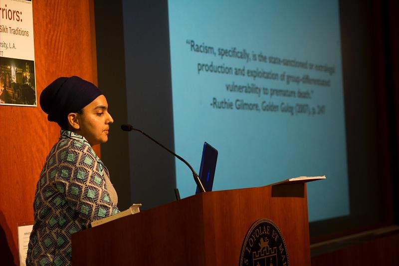 Tavleen Kaur (Ph.D. Candidate, University of California at Irvine) gave a talk “Vandalized Walls, Repurposed Halls: Hate and Heritage in the Public Sphere” illustrated how hate crimes are caused by Americans who are unable to distinguish between the “brown varieties.” She demonstrated how media portrayals of Sikhs has led to physical injury and even death of Sikhs as well as vandalism in the Gurdwaras – all of which the state appears to legitimize by labelling them merely as “hate crimes.”