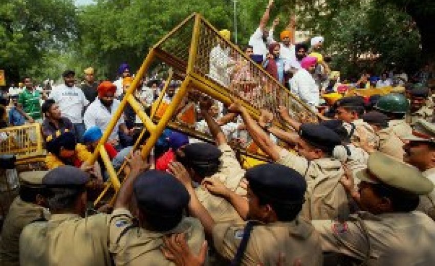May 8, 2013 - NEW DELHI: Measures to stop a few hundred Sikh protesters from reaching Parliament threw traffic out of gear in central Delhi on Tuesday morning. In an attempt to prevent protests while the House was in session, Delhi Police turned the area into a fortress by barricading roads and streets.