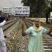 The leaders of the Sikh radical groups staged dharna on the Samrala Chowk, where a 58-year-old protester Darshan Singh, an autorickshaw driver was killed in police firing on Saturday.