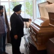 “This is the Sikh symbol, we call it the Khanda, and this is the Hindu symbol, Om,” Baljinder Bhullar explained as he pointed to designs on a collection of urns. “Most of our people, they would like to take ashes back to India.”