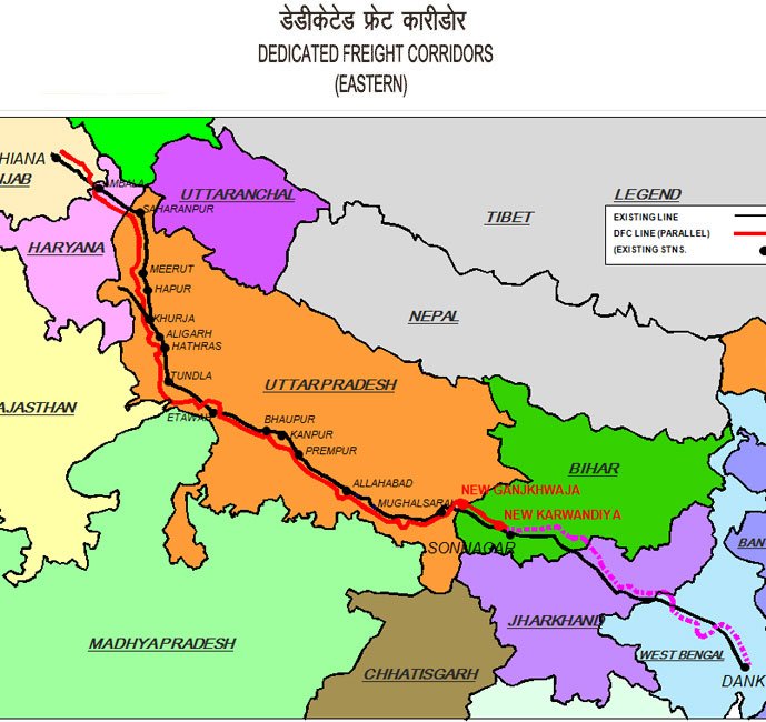In a similar manner, the Amritsar - Delhi - Kolkata Industrial Corridor will use the Eastern dedicated Freight Corridor as the backbone. The Eastern DFC extends from Ludhiana in Punjab to Dankuni near Kolkata.