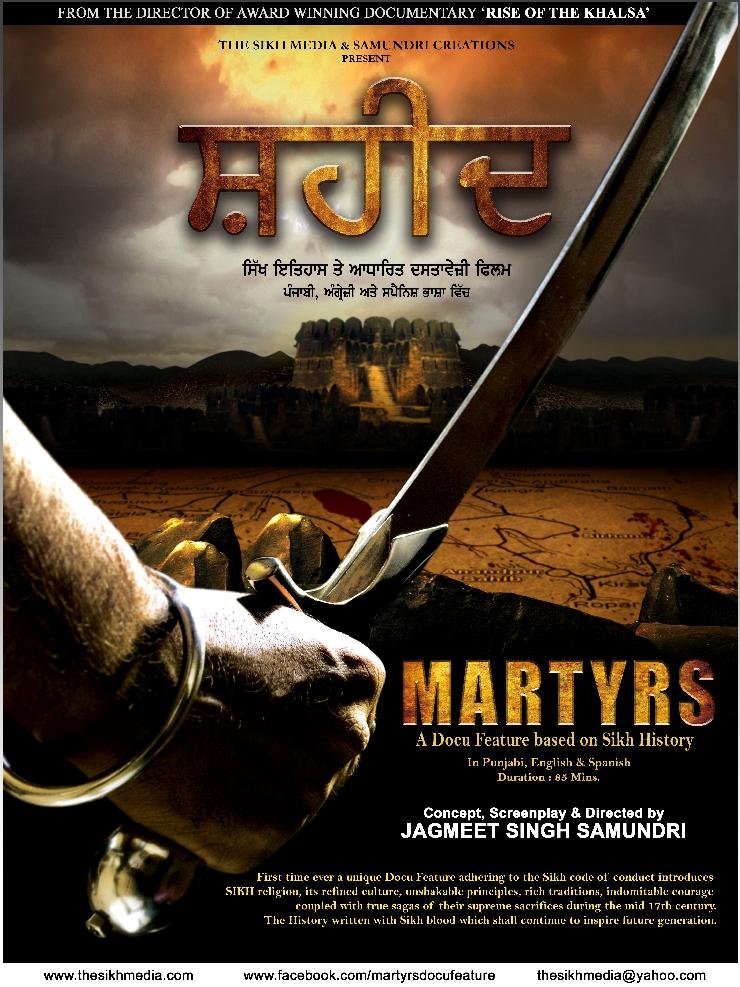 MARTYRS is the first international film on Sikh history. Screenings are happening now at various Gurdwaras in New York City and it has been very well received by audiences. This 85 minute docu-featuure depicts a brief introduction to Sikh history and all the Ten Gurus ( Guru Nanak Dev Ji to Guru Gobind Singh Ji) and then the film picks up from the mid- seventeenth century when the Mughal Emperor Aurangzeb led a reign of terror and mass conversions to the Islamic faith.