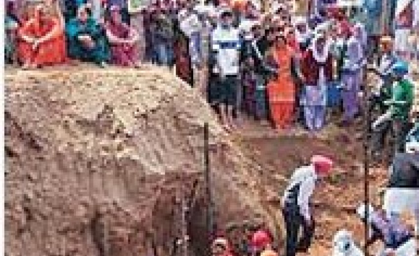 Excavation (49K)Chandigarh, March 2, 2014: The excavation work at a well in Ajnala near Amritsar, in which 282 Indian soldiers were thrown into on August 1, 1857, on Saturday threw up the remains of around 100 martyrs. Sikh historian Surinder Kochar and Gurdwara Shaheed Gunj Management Committee have started excavation of the Rebel's Grave, popularly known as the 'kaalon ka kuan', where the Indian soldiers were pushed into by British officials.