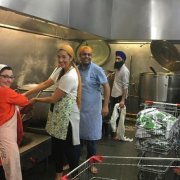 Sikhs, and followers of Sikhism collectively cook langar i.e the communal meal at the community kitchen. They help the appointed gurudwara members, commonly referred to as sewadars, with food preparation. In 2019, former contestants of MasterChef Australia, Monica Mignone, Sandeep Pandit, and Waleed Rasheed came together to cook langar at the Sri Guru Singh Sabha Gurdwara, in Melbourne’s northern suburb of Craigieburn.