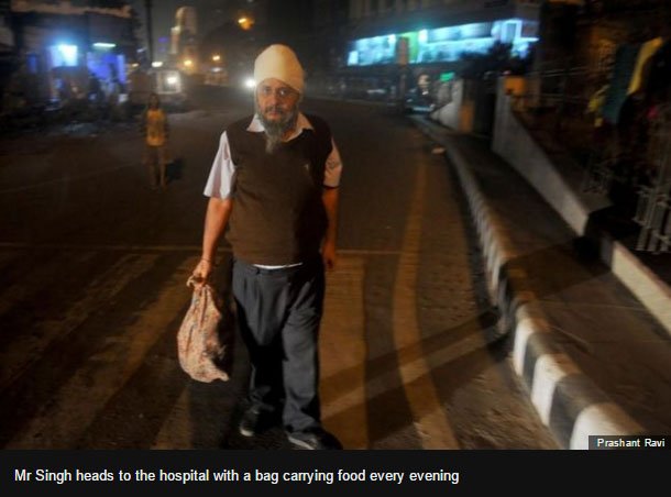 The unfailing devotion to his patients is matched by Mr Singh's unchanging routine. Around nine every evening, he leaves his modest apartment - all his five brothers live on a floor in one of the city's oldest high-rises - and heads to the hospital.