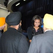 | Picture by Sonia Bhagat: Mitchelle Obama Shaking hands with Dr. Rajwant Singh, standing next are Raghuvinder Singh (Son of Baba Punjab Singh), Gurmail Singh (Son of Baba Santokh Singh) |