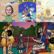 Even though some paintings are set in the nighttime, the moon and stars illuminate the imagery so that a sense of enlightenment is always present. As the artist stated in his Instagram page, “The lamp is lit in the darkness; all are saved in this Dark Age of Kal Jug, through the One Name and faith in the Dharma.”