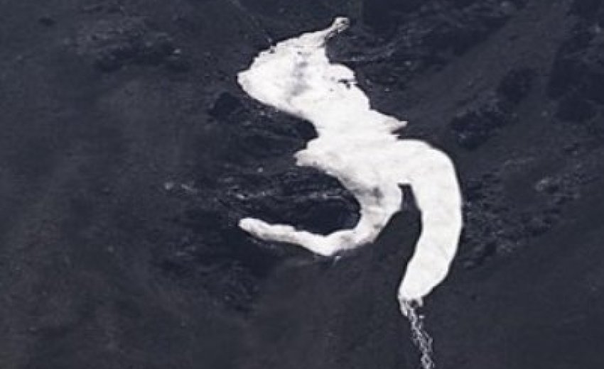 Photo : “Om” formed by melted snow. See bottom right of photo.