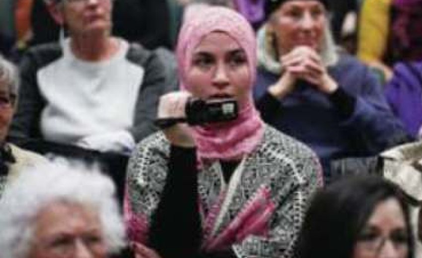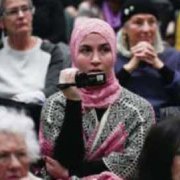 Susan Munroe, who snared a seat in the front row, said she came because, “I am very supportive of the people leaving Syria. It’s an absolute tragedy for the Islamic people.” Munroe, who said she had taken up wearing a head scarf to show solidarity, said, “I’m also concerned at even the thought of Muslims being stopped at our borders.”
