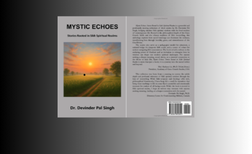 The author introduces his UNIQUE work in the Preface “Bridging the Temporal and the Timeless” as follows: “The stories in Mystic Echoes: Stories Rooted in Sikh Spiritual Realms emerge from the convergence of profound spiritual reflection, lived experience, and the enduring resonance of Sikh philosophy. They are not merely works of fiction, but narrative expressions of spiritual truths rooted in the teachings of the Sikh Gurus”. Further, D. P. Singh explains the relevance and importance of chosen topics: “Each story in Mystic Echoes is an attempt to explore a specific spiritual theme from within the Sikh tradition: Naam (Divine Name), Hukam (Divine Order), Haumai (Ego), Maya (Worldly Illusion), Raza (Divine Will), Sunn (Primal Void), Sahaj (Equilibrium), Bhaau and Bhae (Devotional Love and Reverent Fear), Nadar (Grace), Wismad (Wondrous Bliss), Anhad Naad (Unstruck Melody), Chautha Pad (Fourth State), Dasam Duar (Tenth Gate), Panj Tat (Five classical elements), and Daya (Compassion) among others.