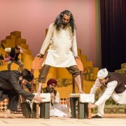 As India and Pakistan mark the 70th anniversary of their independence, Naatak’s Toba Tek Singh, a poignant satire, serves as a heart rending reminder of the pain and horrific experience of the millions who were uprooted from their homes. It absolves neither the Brits, who arbitrarily decided the fate of the subcontinent they had ruled for a hundred years, nor the Indian politicians, that many feel betrayed the country for their own ambitions. In a stroke of genius, Sujit Saraf makes the lunatics play the politicians and morph back into being inmates of the asylum. In one hilarious scene Jinnah, the President of Pakistan is called a lunatic by an inmate. The lines between the sane and insane blur while the stark insanity of the partition rings clear. Nachikata Yakkundi’s music, and the impeccably choreographed dances steal the show even as they advance the story. The set is beautiful and the costumes vibrant. The interleaving of the National Anthems of India and Pakistan hints at the inextricable and knotty relationship of the two countries. The rendition of the Indian National anthem in Bengali is pure ear candy.