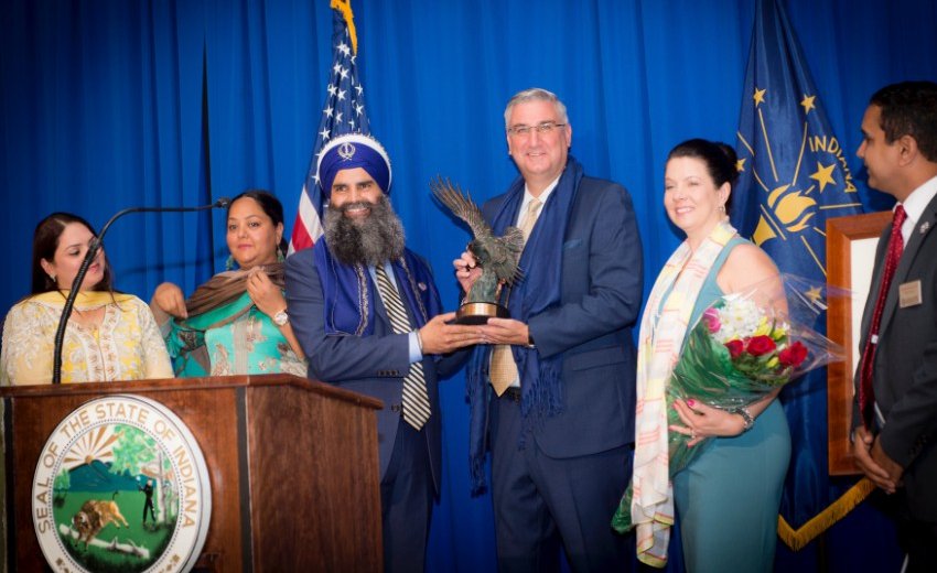 Indiana Governor Eric Holcomb delivered the keynote-featured address. " I'm honored to celebrate National Sikh Day with my dear friends. We are so proud of the many contributions that members of the Sikh community have made to our state. The Sikh community has become a part of and it's a thread in our fabric, in our State's fabric. Sikhs are not just well-known around the world, they are home here in Indiana, as our families become one, it helps get the word out and promote that Indiana is not just open for business but we're a great place, if not the best place to do business and to raise your family and to ultimately, permanently call Indiana home,"