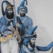 ‘We are the Akali’s (immortals), we universally belong to all yet our path is unique and distinct.’ (Salok Dumale Da) From this episode we learn that the blue bana resembles the very form of Akaal Purakh hence it is also called the Akali bana. Furthermore, that the Tenth Guru granted a boon that a Panth would flourish bearing the form of Akaal – the Akali Panth or path of the immortals. For this reason, Akali’s who today are more commonly called Nihang Singhs hold Baba Fateh Singh to be the eternal Jathedar (Supreme General) of their armies and epitome of the Nihang ways. The second widely acclaimed story on the origins of the blue bana and Akali Panth relates to Bhai Maan Singh. He was one of Sri Guru Gobind Singh Ji’s most beloved Singhs and is also believed to have received a similar boon by the Tenth Guru. When Sri Guru Gobind Singh Ji left the battle of Chamkaur at the order of the Khalsa Panth, they were accompanied by Bhai Maan Singh a few other devotees through the jungle of Machiwara around December 1705. The popular account of this story is that when Sri Guru Gobind Singh removed their blue garments which they had adorned dressed as Ucha Da Pir, Bhai Maan Singh kept a small piece of blue cloth and the Guru replied that the there would be an order of warriors dressed in blue to commemorate his devotion. Another story noted by Kavi Santokh Singh is that when Bhai Maan Singh presented the Guru with some Sukha (giver of piece – cannabis which was used for its medicinal and spiritual purposes) the Guru was pleased and granted a boon that; ‘There will be many in the Panth Khalsa who shall dress like you and they shall also possess your great character and mindset. Their name will be Nihang and there shall be many of these Akali’s.’ (Gur Partap Suraj, Rut 6, Ansu 44)