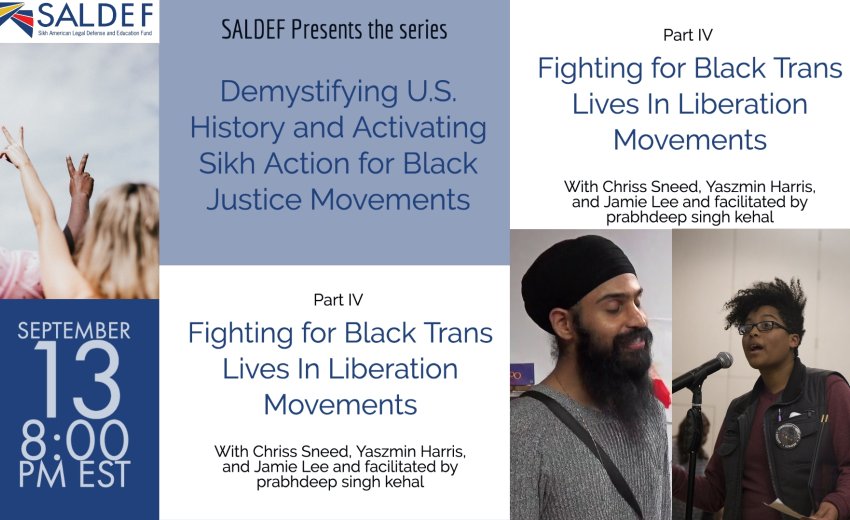 This weekend SALDEF will present the fourth episode of the series Demystifying U.S. History and Activating Sikh Action for Black Justice Movements. The fourth episode, Fighting for Black Trans Lives In Liberation Movements will air September 13, 2020 at 8:00 PM EST.