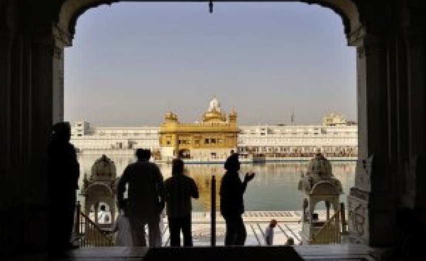 At Amritsar's glimmering Golden Temple, the holiest shrine of the Sikh religion, people can dine free at the world's largest community kitchen, or langar. Sikhs pray at the Golden Temple at dawn