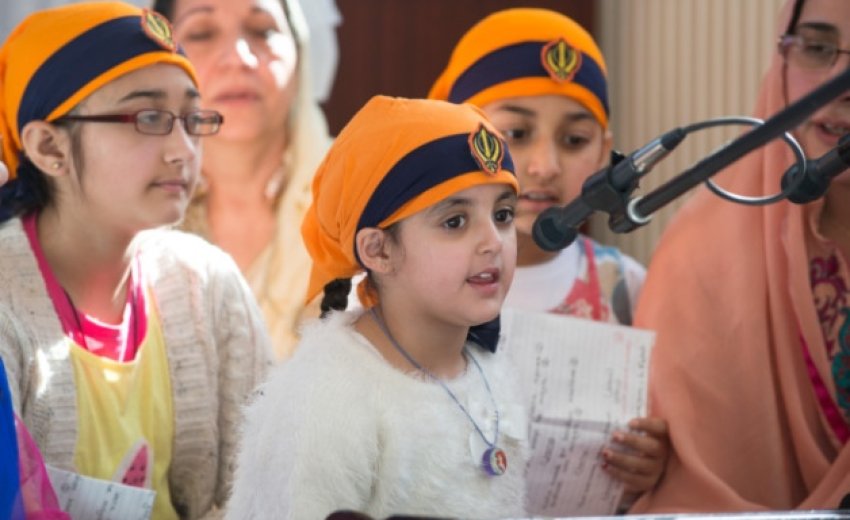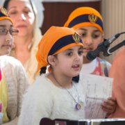 | Ibadat Sohal recites part of the Sikh Holy book the Guru Granth Sahib |