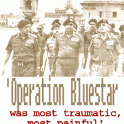 03brar4 (20K)Readers may recall that Indira Gandhi had launched her military in the controversial Operation Blue Star on June 3-8, 1984 in which the Akal Takht, the holiest of relics of the Sikhs, housed in Harmandir Sahib, also known as the "Golden Temple" in Amritsar, Indian Punjab was desecrated and destroyed to flush out Sant Jarnail Singh Bhindranwale. The Sikh leader, who had taken residence in Harmandir Sahib, was accused of amassing weapons in the gurdwara to start a major armed uprising, which is contested by most Sikh scholars who claim that Indira Gandhi attacked the Harmandir Sahib complex to present herself as a great champion of democracy so she could secure victory in the forthcoming elections.