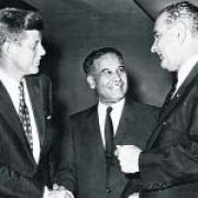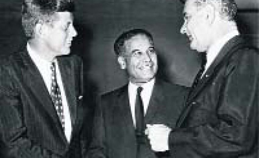 | Dalip Singh Saund (C), the first Asian-American elected to the Congress, flanked by US President John F. Kennedy (L) and Vice-President Lyndon B. Johnson. |
